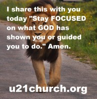 Blessings, Friends may you receive this WORD with encouragement. “Keep looking straight ahead, without turning aside.” Proverbs 4: 25 CEV Friends keep looking straight ahead, without turning aside. Friends we are warned to stay focused on what GOD has shown us or guided us to do. Daily Thought I share…