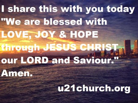I share this with you today “We are blessed with LOVE, JOY & HOPE through JESUS CHRIST our LORD and Saviour.“ Amen.