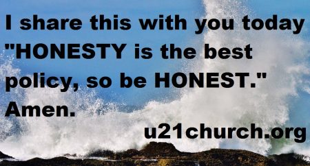 I share this with you today “HONESTY is the best policy, so be HONEST.“ Amen.