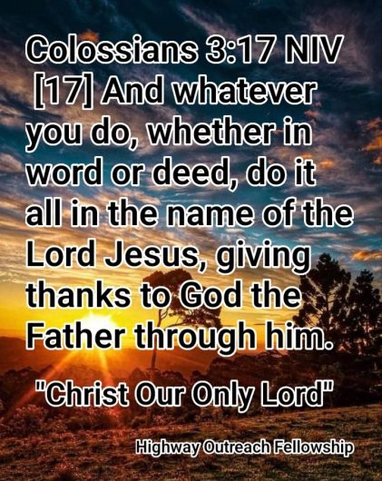 WORD of TODAY Colossians 3: 17 Pastor Gavin December 15, 2023 December 15, 2023Daily Word, Pastor Gavin CMI, COOL, Gavin Ferrier, GOD, Gospel, LORD, ministries, Pastor Gavin CMI sharing the gospel daily with all. “Christ Our Only Lord” May you be blessed and encouraged by today’s word. COOL with us. Gavin Ferrier Pastor Gavin Ministries – COOL Ministries International